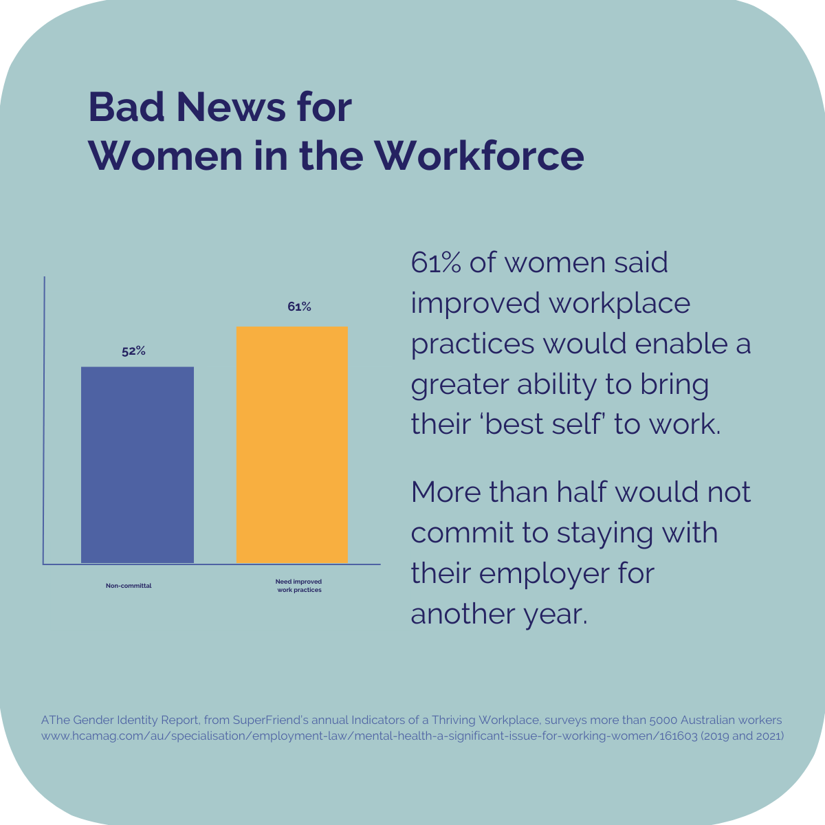 Click here to find out more about how to retain female staff in a mentally healthy workforce where they can perform well.